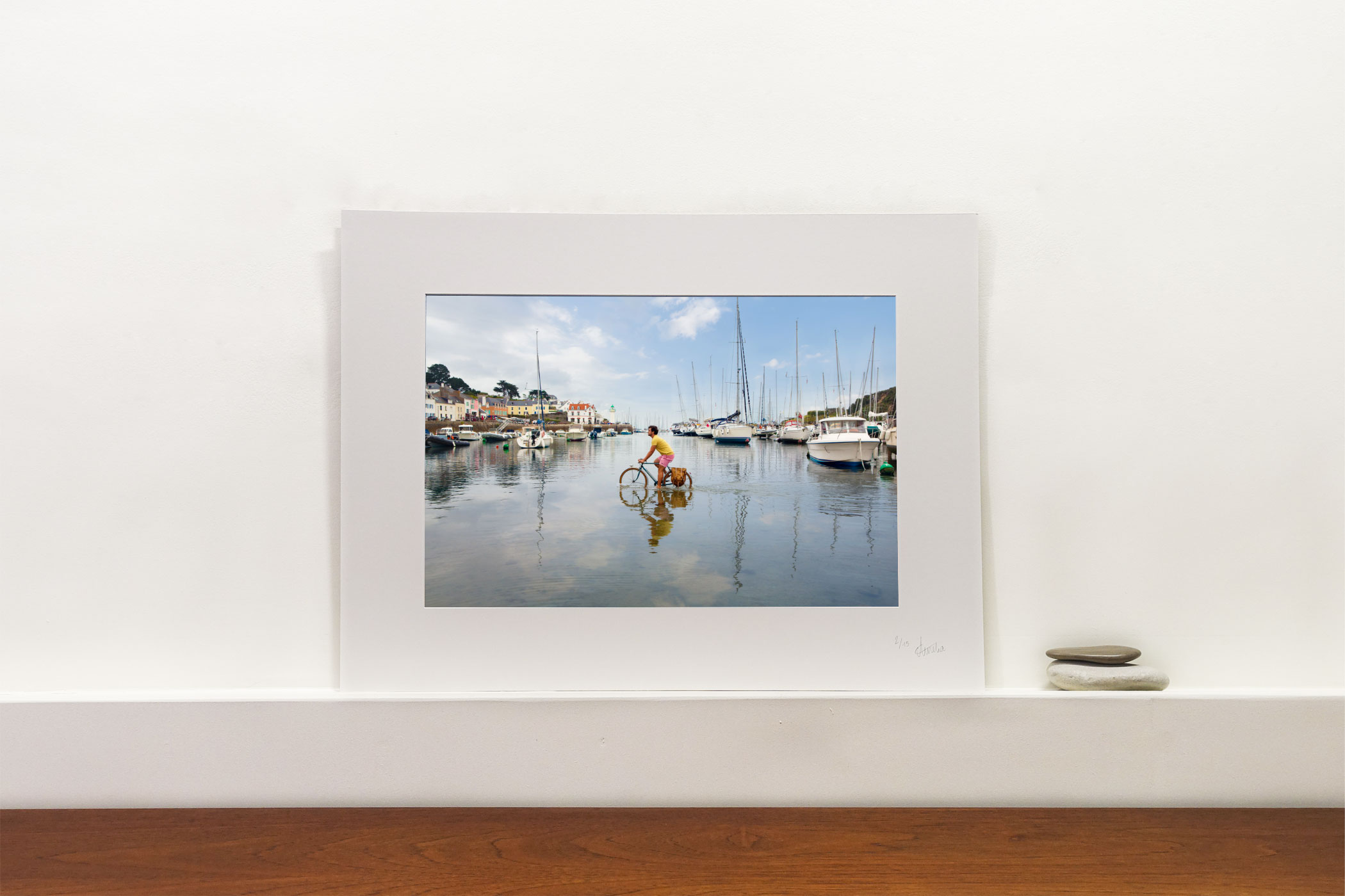 “Cycling on water – 40×60” is part of the “Insolite Insulaire” series by young contemporary photographer Aurélia Faudot.