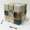 Raku is a ceramic firing technique developed in 16th century Japan. The meaning of the ideogram for raku-yaki emphasises the serendipity of the firing process. The glazed sculptures were fired at 950 degrees, and the thermal shock produced the cracks in a completely random way. The object is then smoked, which blackens and enhances these accidents.
