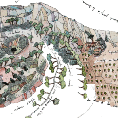 « Machoire d’argile » est un dessin contemporain de l’artiste cartographe Amandine Maria.